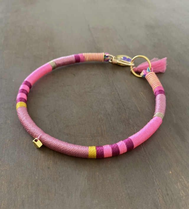 Collier bijou en paracode et cordons nylon pour le tissage, laiton et ou zinc pour l’attache et la médaille.